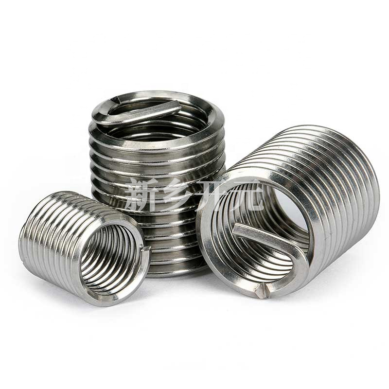 钢丝螺套是一种新型内螺纹紧固件,它是由高强度、高精度、高表面质量的耐蚀菱形截面的钢丝绕制而成,形如弹簧。钢丝螺套装入螺孔中,钢丝螺套的外表面靠弹力贴合在螺孔上,其内表面形成新的螺纹,用于拧入螺钉或螺栓,使螺钉或螺栓不直接与基体接触,保护了基体及螺钉,起到延长螺纹使用寿命、增加螺纹连接强度、增大螺纹受力面、增加螺纹连接的承载力和抗疲劳强度、抗震防松脱等作用。