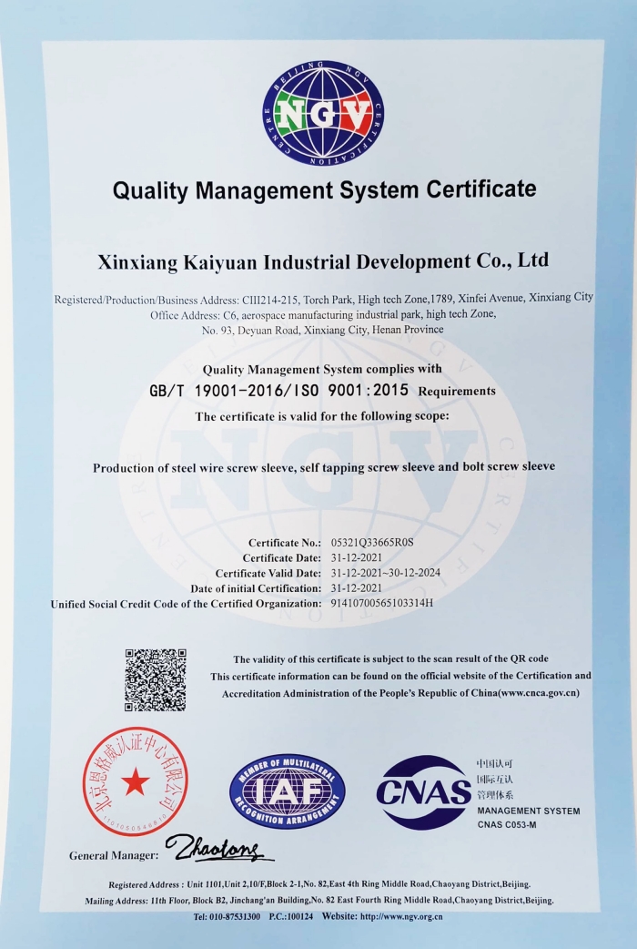 质量管理体系认证证书 英
