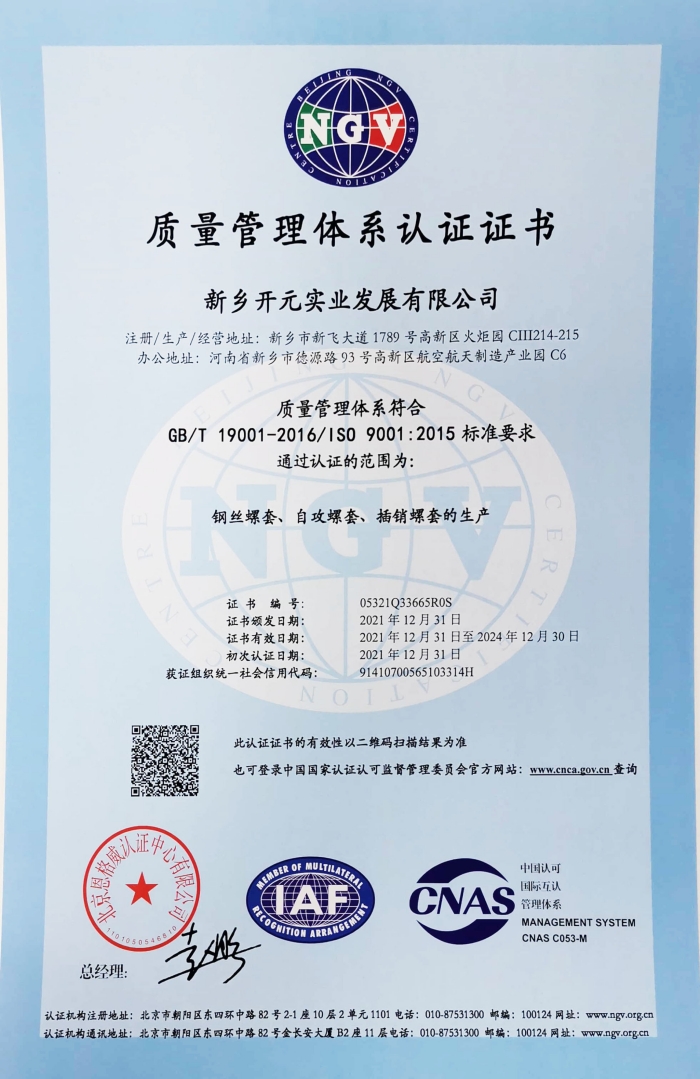 质量管理体系认证证书 中